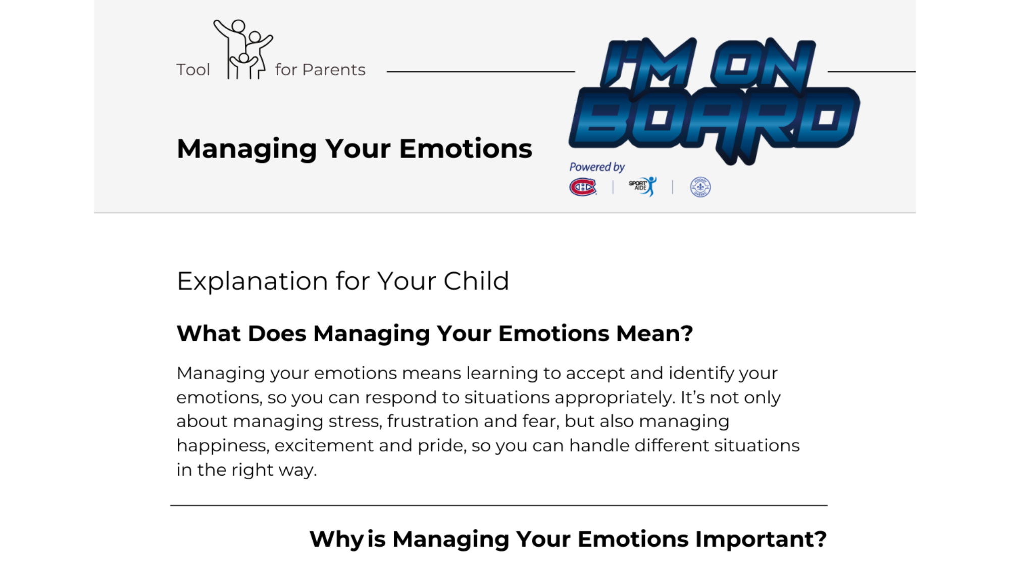 Note: The I’m on Board program is currently being implemented to U7, U9 and U11 teams in the following regions : Gaspésie-Les Îles, Lac St-Louis, Québec-Chaudière-Appalaches, Richelieu and Mauricie. If your child’s team is based in one of these regions, you can contact the regional program manager for more information. You can access the content regardless of where their team is based. Contact us for more information.